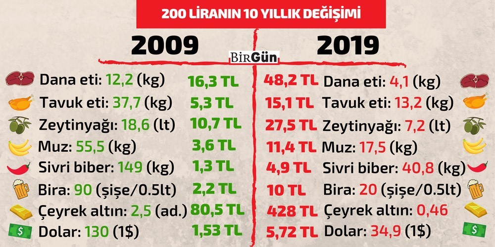2009'da 200 tl ile yaptığın bir alışverişi, şimdi 1049 tl ile yapabiliyorsun.