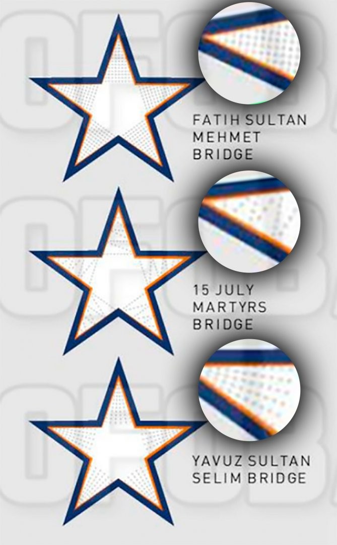 toptaki yıldızlar asyayı avrupaya bağlayan köprüleri temsil ediyor ve bütün yıldızlar birbirine bağlanıyor. burada 15 temmuza dair bir atıf yok çünkü köprünün adı 15 temmuz köprüsü. sadece köprünün adını yazmışlar. topta fazla abartılacak bir şey olduğunu düşünmüyorum ben. her şeyin altından da bir şey aramasak mı