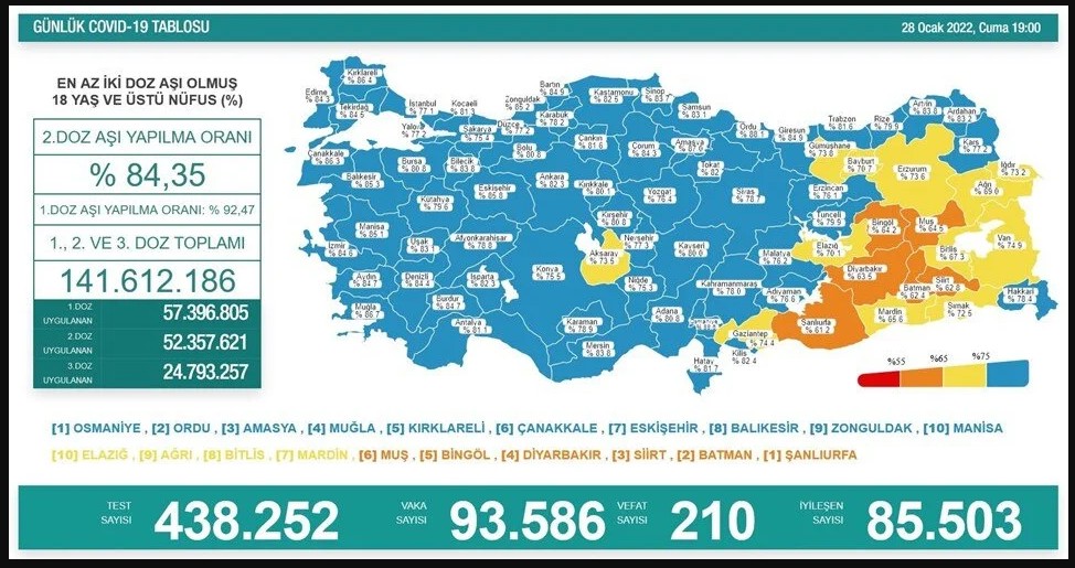 28 ocak 2022 covid-19 vaka sayısının 93.586 olması