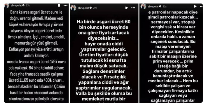 2025 asgari ücret rakamı için bir öneri de şarkıcı ebru polat'tan geldi.