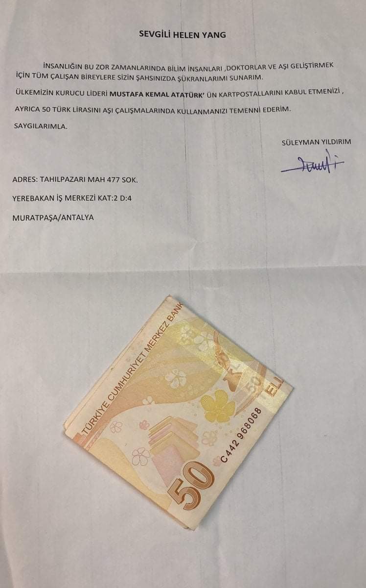 aşı nedeniyle çin'e teşekkür mektubu yollayan vatandaş