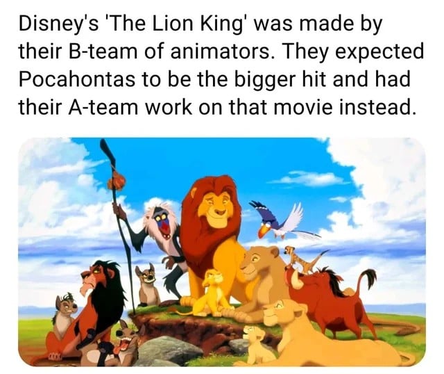 şu görseldeki bilgiye göre bu animasyon filmi disney'in b takımı animasyoncuları tarafından yapılmış. pocahontas'ın daha büyük bir hit olacağı düşünüldüğünden de onu a takımına vermişler. sonuç ortada, haha. bu arada reddit'te birinin yazdığına göre b takımı, tv animasyonlarıyla ilgileniyormuş. ducktales'i falan yapmışlar yani. bana göre a-b diye kategorilendirme, b takımını ekstra hırslandırmıştır.
