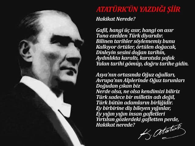 "atatürk'ün yazdığı hakikat nerede adlı şiiri" ile benzer başlıklar