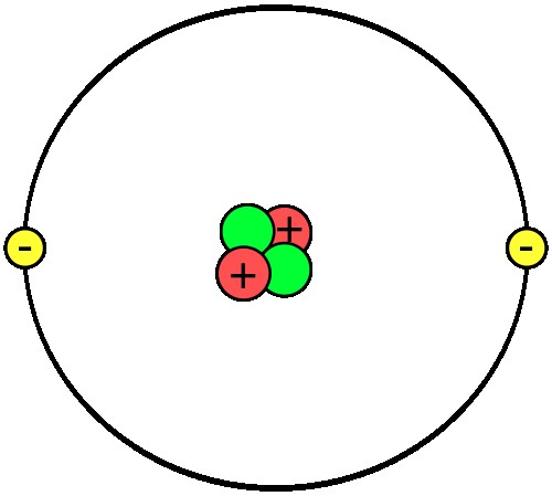 dönencelerinde proton, elektron ve nötron iyonların olduğu atomaltı parçacıkları simgeleyen geniş atom modeli