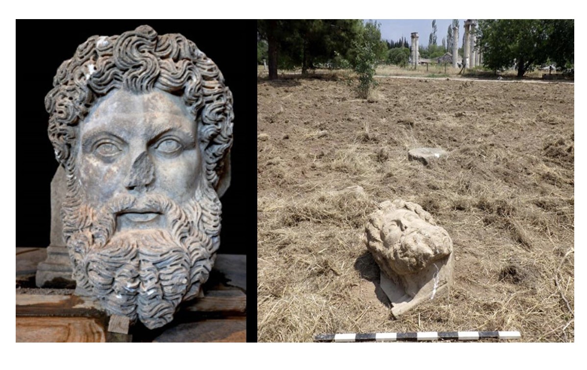 aydın’da aphrodisias antik kenti’nde zeus başı bulması