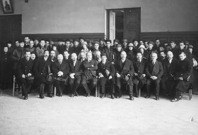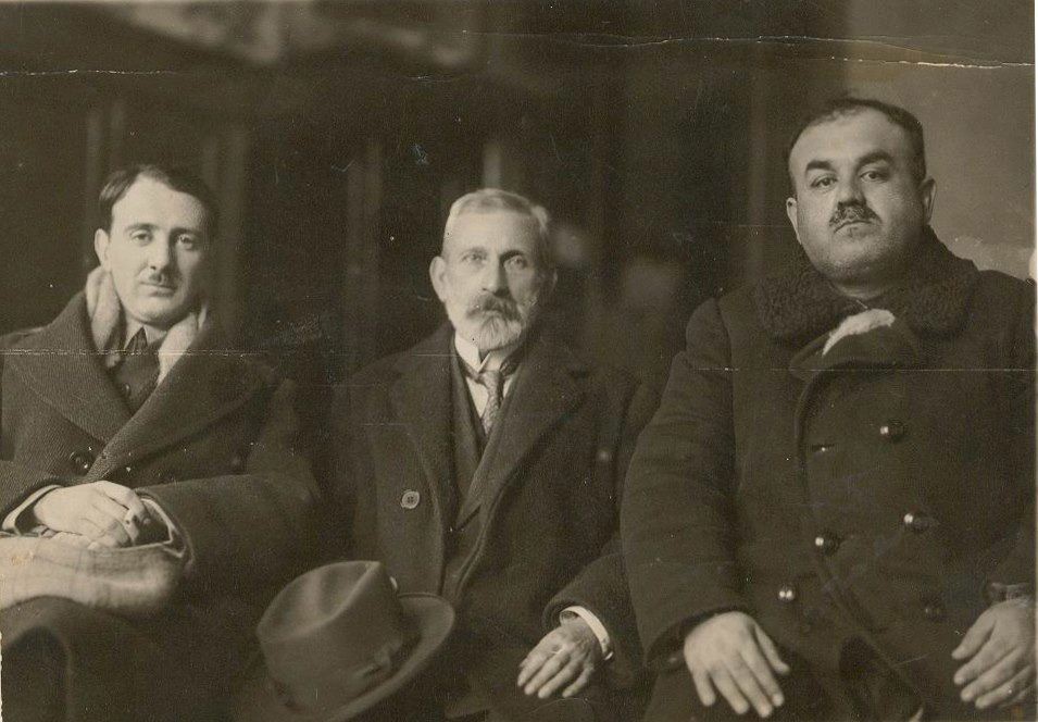 [bakü türkoloji kongresinin katılımcılarından 3'üne ait bir kare, en soldaki mehmet fuat köprülüzade, kongreye türkiye'den o katılmıştır]