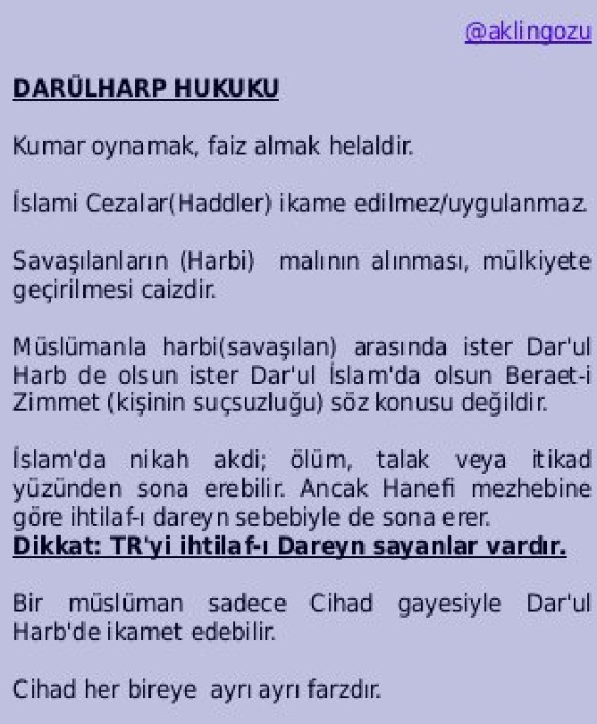 Darü'l-Harb (Sayfa 5) - Normal Sözlükislamiyet'in hüküm sürdüğü toprakların dışında kalan toprakları ifade etmek için kullanılan islami terim. bunlar islami hükme göre, cihad yapılması fahttps://normalsozluk.com/b/daru-l-harb--4030?page=5