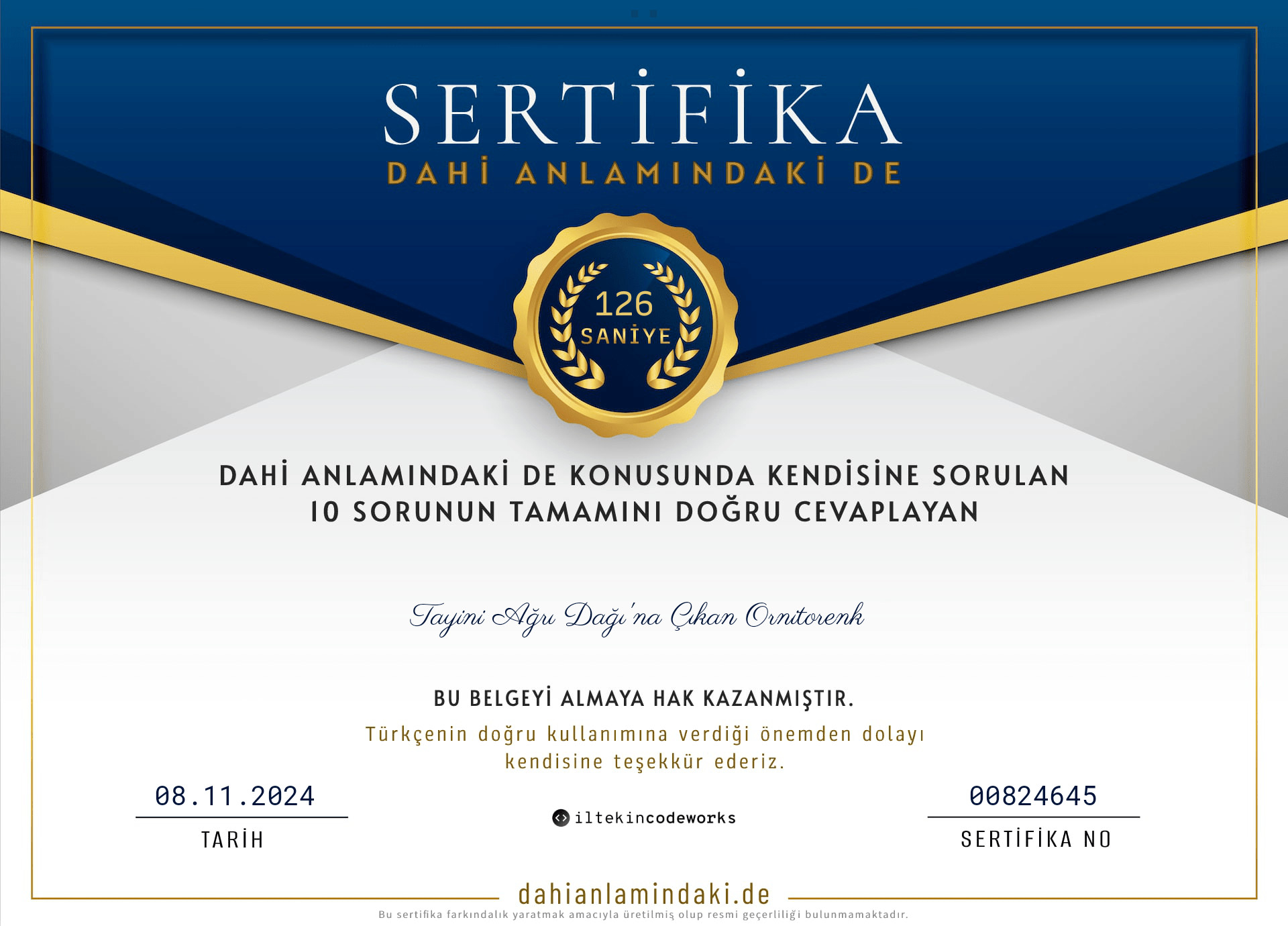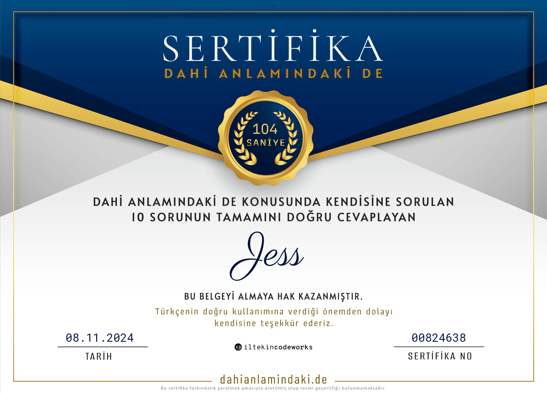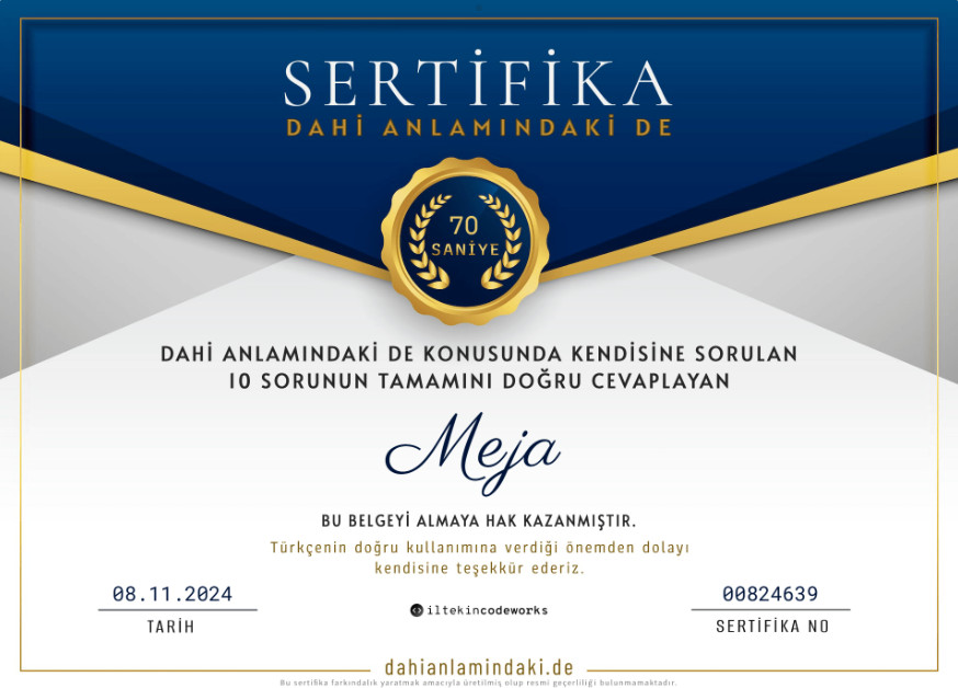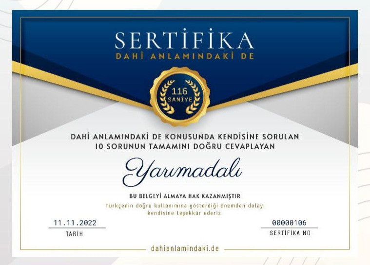 sertifika numaram 106, dikkatinizi çekerim.*