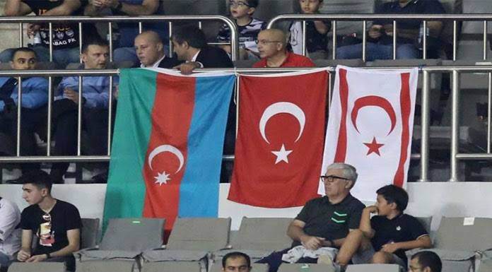 bir maç sırasında açılan türkiye-azerbaycan ve kktc bayrakları