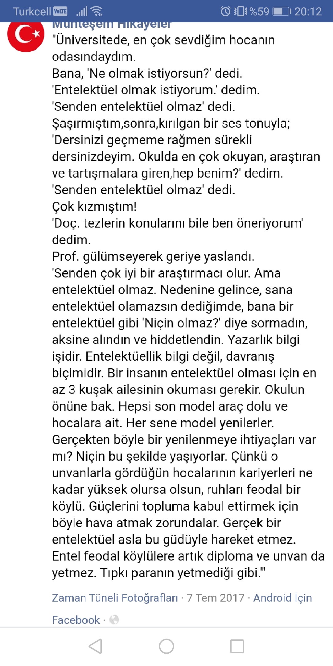 ama eğer üç kuşak boyunca aile fertlerin okumamışsa entelektüel sayılmıyormuşsun...