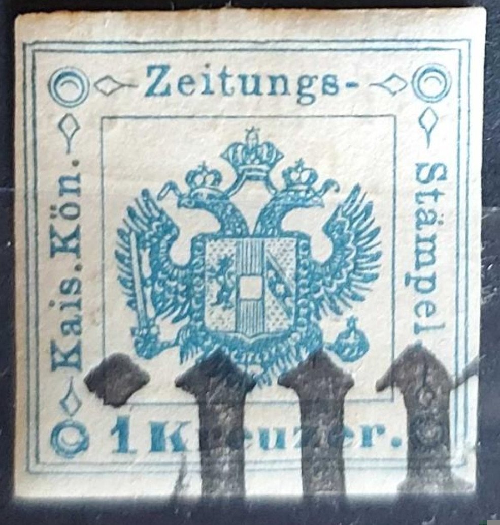 avusturya'ya ait, 1858'de kullanılmış bir gazete pulu,