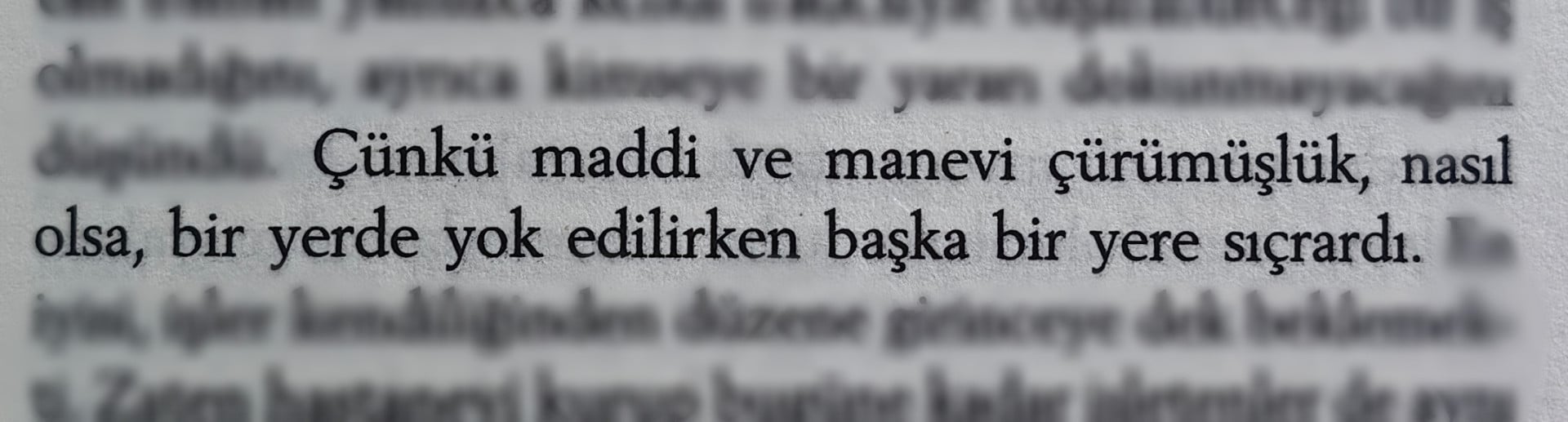 “ağaç dalındaki, gövdeden ayrılma eğilimini farkettin mi bilmem? hep öteye uzar. gövdenin toprağa kök salmış rahatlığından bir kaçıştır bu. özgürlüğe susamışlıktır. buna ben ‘ağaç dalı kompleksi’ diyorum. genç hastalığıdır. ağaç dalı kompleksine tutulmuş kişi tedirgindir. insanların ağaç dallarını budayıp gövdeye yaklaştırdıkları gibi, yakınları onun içindeki bu ağaç dalı kompleksini budarlar. onu gövdeden ayırmamak için ellerinden geleni yaparlar. kimi insana ne yapılsa yararı olmaz. asi daldır o. ayrılır. balta işlemez ona.”