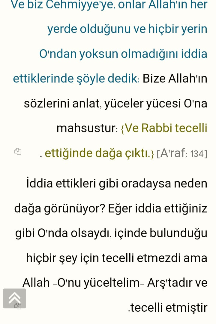 #3259489 şimdi bu geri zekalıya hanbelî mezhebinin imamı, muhaddis, fakih ahmet bin hanbel'in zındıklara ve cehmiyye’ye reddiye (er-reddu‘ale’z-zenadıka ve’l-cehmiyye) kitabında "allah her yerde hazır ve nazırdır diyen kafirdir ve katli gerekir, çünkü resulullah soru üzerine kızına verdiği cevapta onun gökte oturduğunu söyledi" dediğini ve ayet ve hadislerle iddiasını desteklediğini; ayrıca o görüşün dönemin genel anlayışı olduğunu anlatsak kafası basar mı?