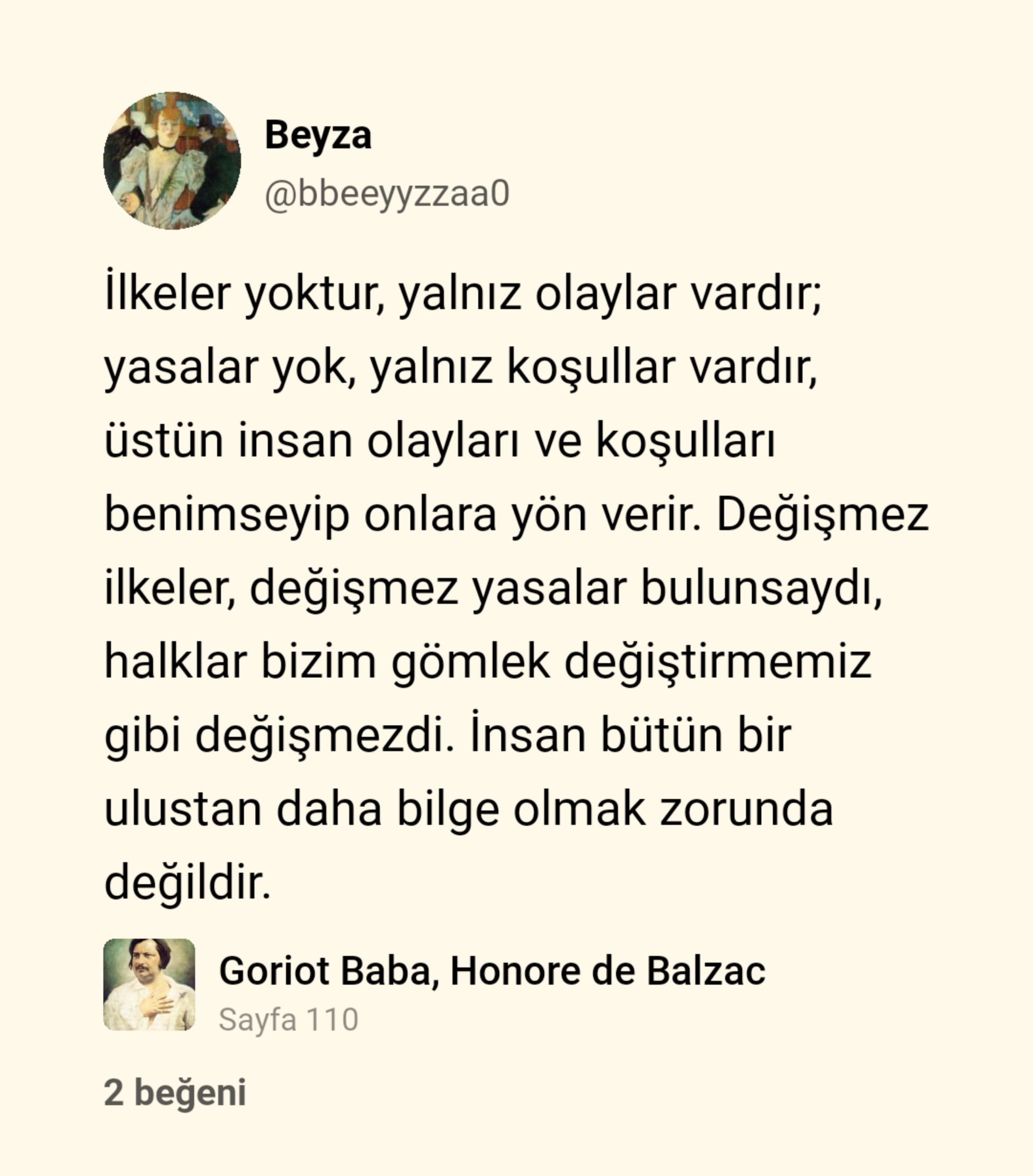 sonunda zavallı goriot baba için hüngür hüngür ağladım. tabi bu kitabı okuyalı çok uzun zaman oldu; şimdi okusam aynı duyguları hisseder miyim bilemem. balzac’a yeni başlayanlar için güzel bir başlangıç kitabıdır.