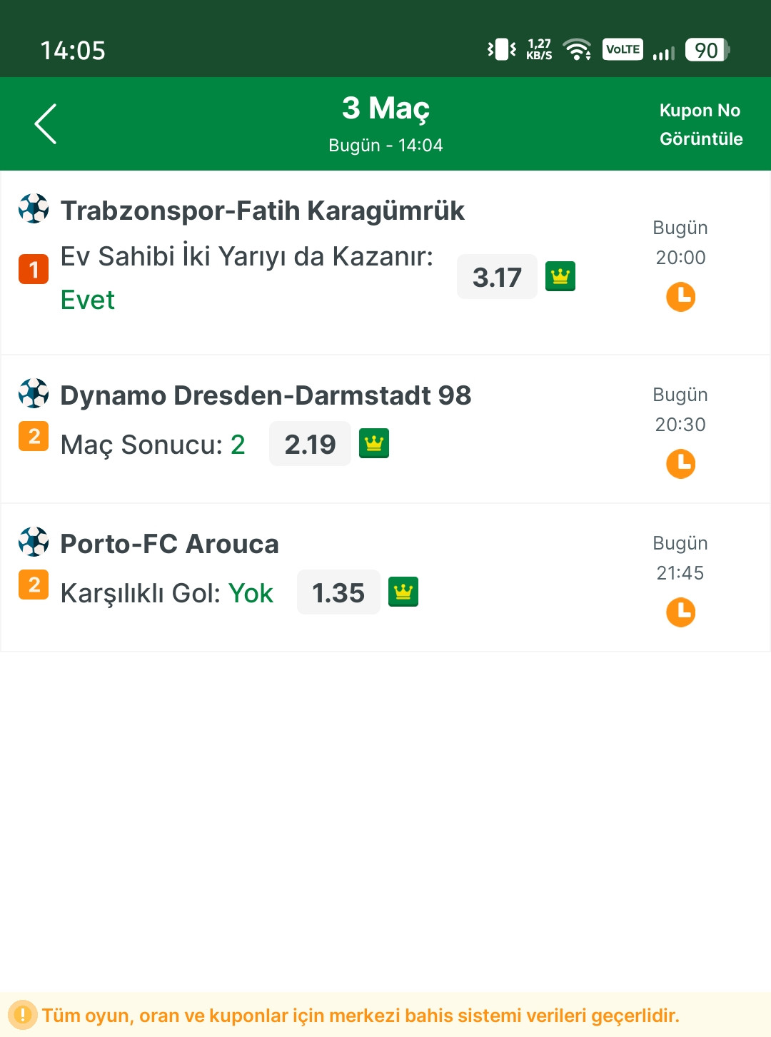 şeklindeki tahmin kuponlarıdır.