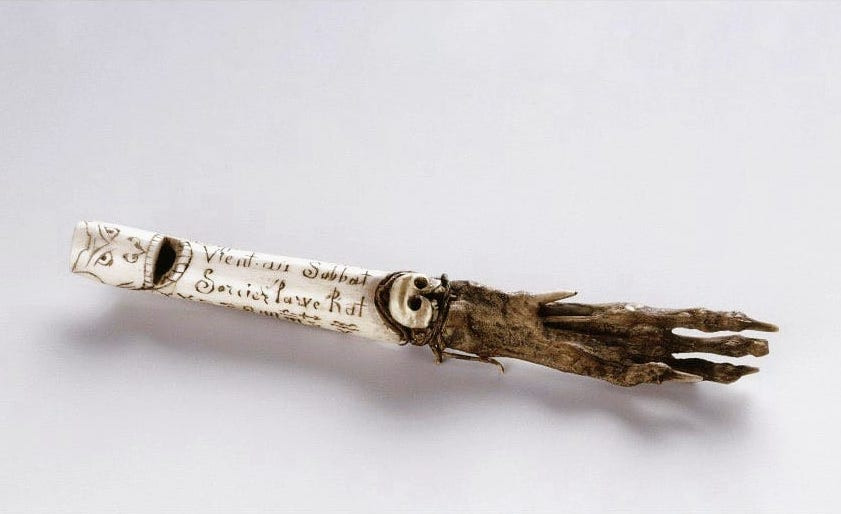 19. yüzyılda belçika'da fare pençesinden ve oyulmuş kemikten yapılan 'heksenfluit' şabat sırasında cadıları çağırmak için kullanılırmış, ancak 1964'te nesneyi satın alan antwerp müzesi'ne göre, üçüncü bubonik veba dalgası sırasında kemirgenleri kovmak için kullanılmıştır. vebanın 19. yüzyılın ortalarında tekrar dünyanın dört bir yanındaki liman şehirlerine yayıldığı ve en çok çin ve hindistan'ı etkilediği sıklıkla unutulur.