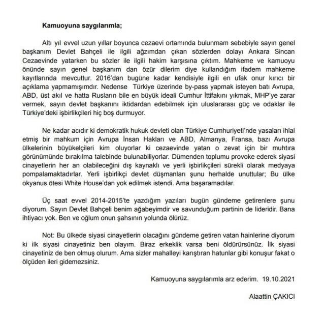 sosyal medya hesabı twitter'dan yazılı bir açıklama yayınlayan alaattin çakıcı, chp genel başkanı kemal kılıçdaroğlu'nun siyasi cinayetler çıkışına çok sert sözlerle yüklendi.