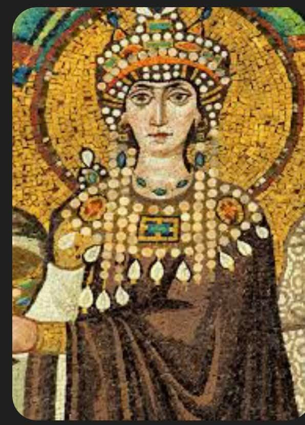 theodora hanım bizans’ın imparatoriçesi ama doğuştan saraylı falan değil. babası öldükten sonra aile parasız kalınca ablasıyla theodora da bir nevi aktrisliğe giriyor ki o dönemde bu da fahişelik demek. çünkü kadın zaten sahneye bir şey koyamaz. sonra justinianus ile tanışıyor ve imparator adayı olan bu bey de theodora ile evlenmek için “senatörler fahişelerle evlenemez” yasasını kaldırıyor. çocuğuyla birlikte kabul ediyor. *