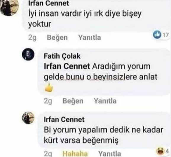 ırkçılık yapan insan benim için kürtlerden farksızdır