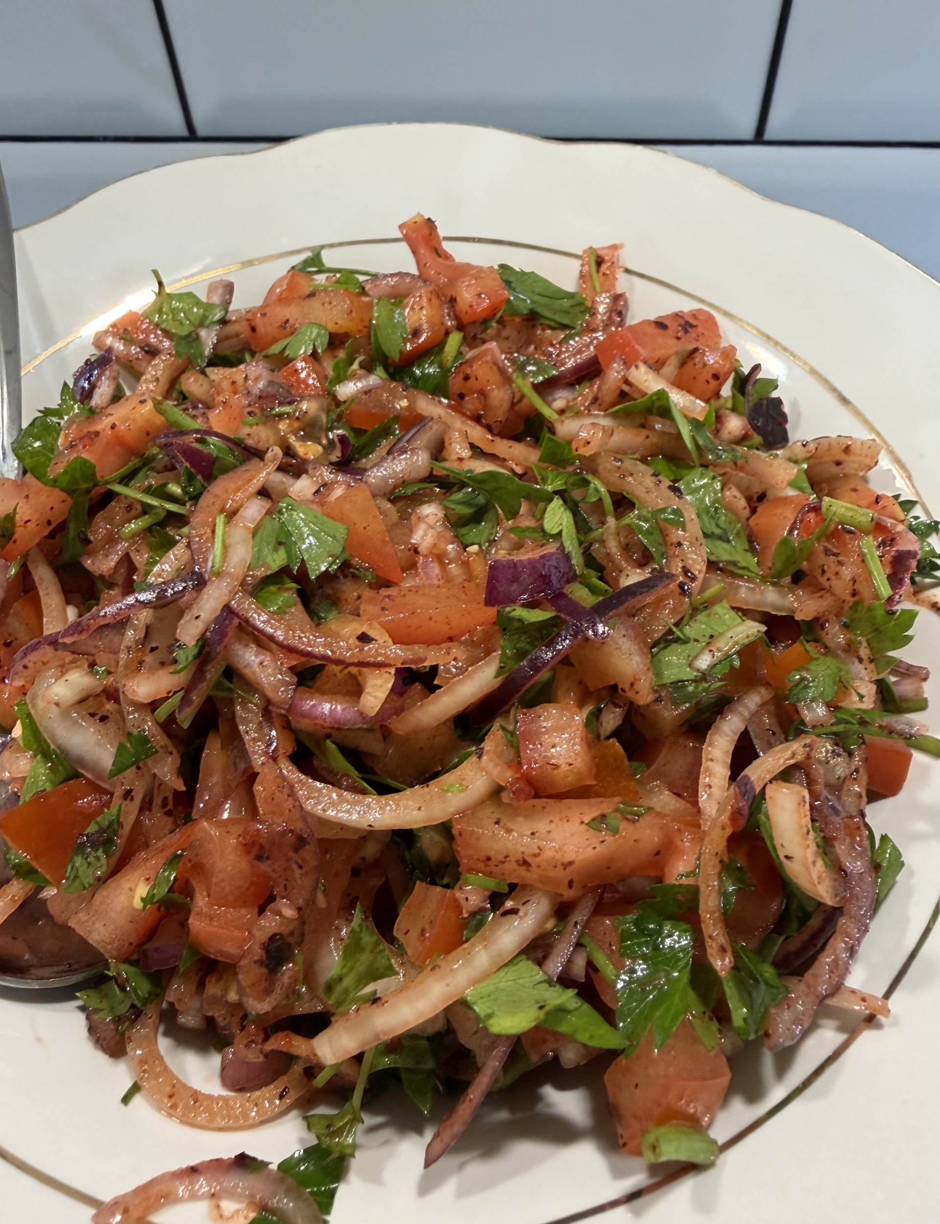 benim hanım egeli, bilirsiniz tavuk sote ve market sucuğu dışında et yemezler. biraz önce bi mangal yaktım ama ne mangal. dört ayaklı her şeyi yatırdım dana kuzu deve ve yengeç. onlar da salata yapacaklar ama 4 tane kadın sadece marul doğrayıp havuç rendelemişler. dedim ki en azından tadı olan bişey yiyin;
