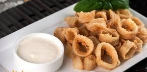 o yüzden, kızarmış halkaları ve yanındaki sosu ile herkesin saygısını kazanmayı becermiş bir mezedir bu kalamar abimiz.