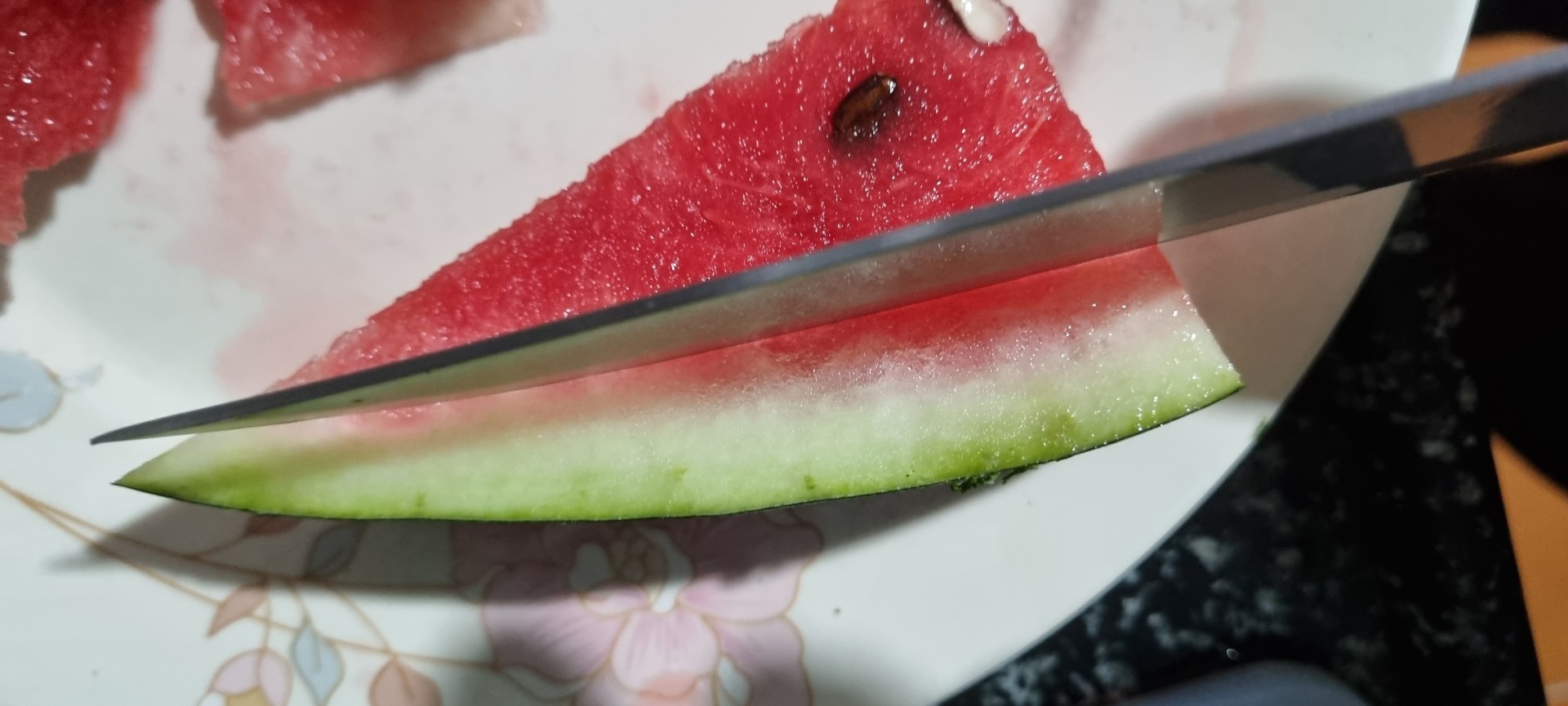 bıçak uygun boyutta ve keskinlikte olsun, aksi taktirde karpuzu zor keserken bıçağın kayması,kısa bıçaktan dolayı yamuk kesikler vs sorunlar olur.