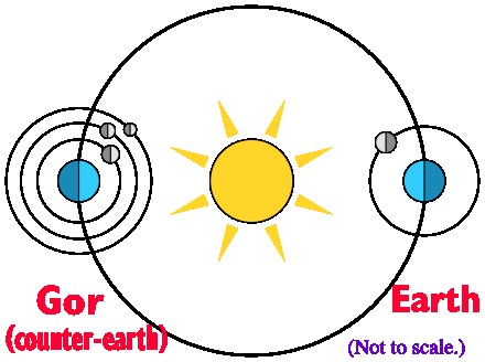 eski yunanlar güneş tutulmasına sebep olan şeyin " antichthon" adındaki gezegen olduğunu düşündüler fakat ileride astronomideki gelişmelerden edinilen tecrübeler "antichthon "un sebep olmadığı , ay'ın sebep olduğu anlaşıldı ki bu da "antichthon" denilen bir gezegenin olmadığına işaret ediyor.unutulup tarihin tozlu raflarına kayboldu fakat 1967 yılında çıkan bilim kurgu serisi "gor - chronicles of counter earth" ile hortlatılarak 20 yüzyıl insanıyla tekrar tanışmıştır.