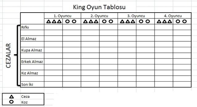 dört kişi ile oynanan ve her oyuncunun üç kez ceza iki kez koz söyleyebilme hakkı olan, yurtların vazgeçilmez oyunu, gençlerin eğlence kaynağı iskambil oyunudur. cezaları şunlardır: