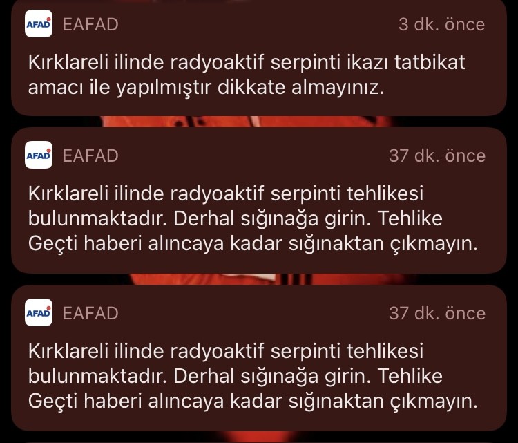 kırklareli’de radyoaktif serpinti tehlikesi bildirimi