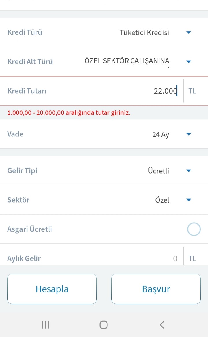 halkbank özelinde tüketici, taşıt, konut kredilerinin tümünü denemiş olmama rağmen en fazla 20 bin lira verdiği görülmektedir.