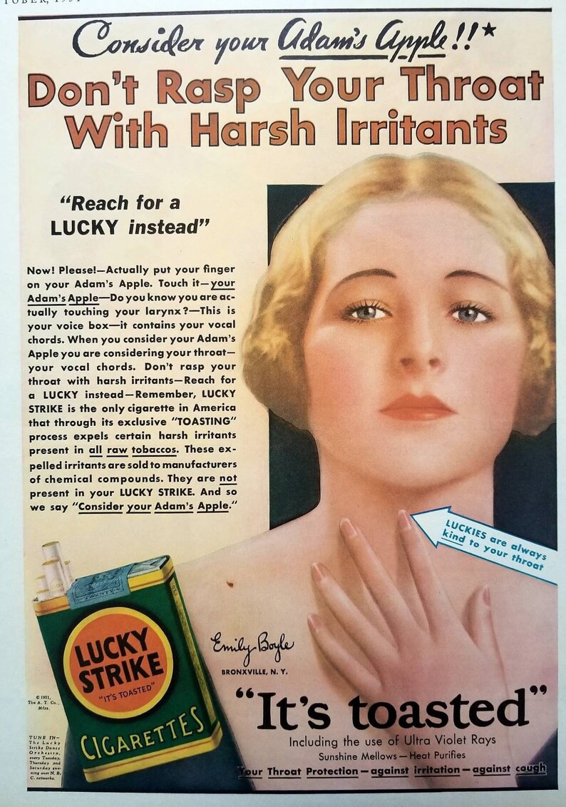 ve yine, sigaranın akciğer kanserine yol açabileceği bilimsel olarak kanıtlanınca tütün ve sigara satışlarında hızlı düşüşler yaşanmıştır. bu seferde algılar başka yöne çekilerek lucky strike 'bütün sigaralar zararlıdır lucky strike ise kavrulmuştur' sloganıyla tütünlerinin kavrulmuş olduğunu ve bu işlemin sigaranın zararlarını aza indirgediği mesajını verir. satışları %300 artar.