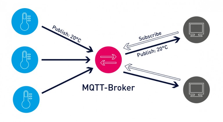 mqtt temelde üç parçadan oluşur. bunlardan ilki haberleşmeyi yöneten "broker" programıdır. broker, temelde bir internet sunucunda çalışan ve protokolün merkezinde yer alan bilgisayar programdır. broker bilgi paketlerini toplar ve gerekli yerlere iletir.