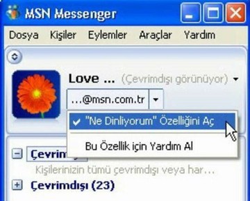 msn'deki ne dinliyorum özelliği