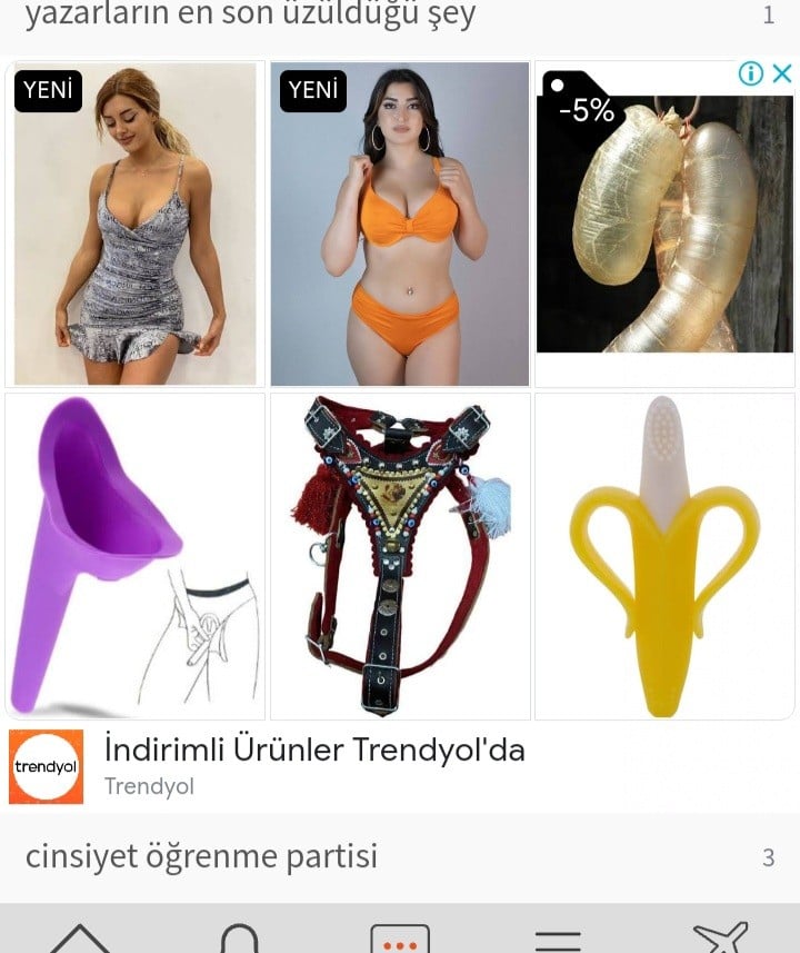 en çok nelere bakıyorsanız onlara ait reklamlar çıkıyor. ben üç gün öncesine kadar kuzenimin mayıs'taki düğünü için sürekli abiye elbise bakıyordum. bu nedenle bende hâlâ abiye reklamları mevcut. az önce fark ettim de... ne güzel derdim varmış ya... üç gündür twitter - ınstagram - sözlük üçgeninde nereden kime faydam olursa diye sabahtan akşama kadar dönüp duruyorum.
