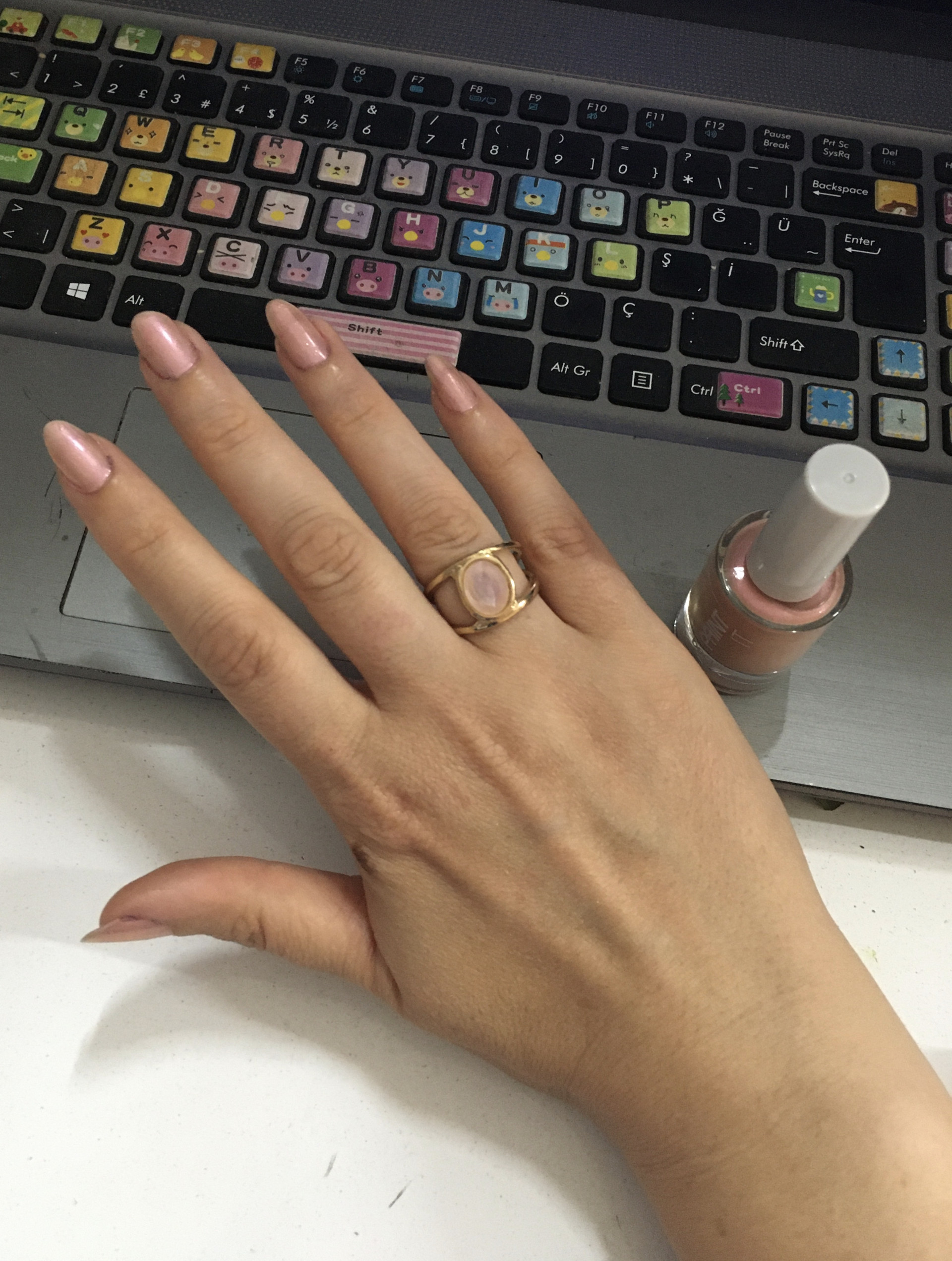 az önceki depresifliğime çözüm olarak yeni takıntım olan boncuk bilekliklerimi takıp ojelerimi sürdüm.