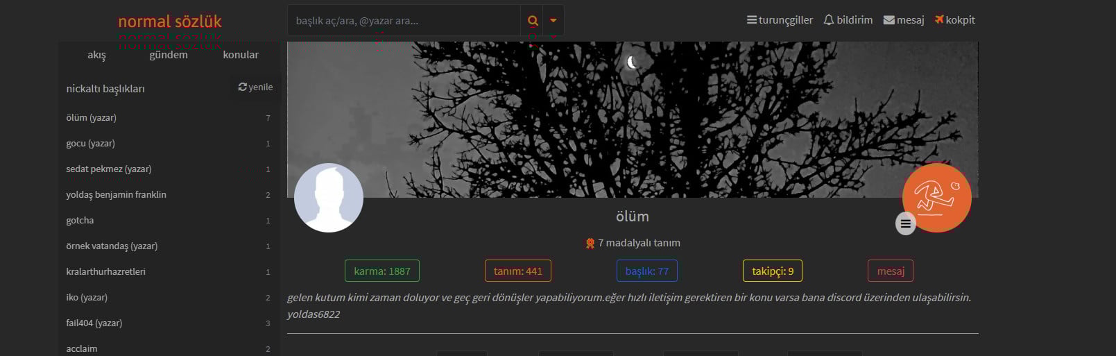 diskord'u; yoldas6822 olan yazar