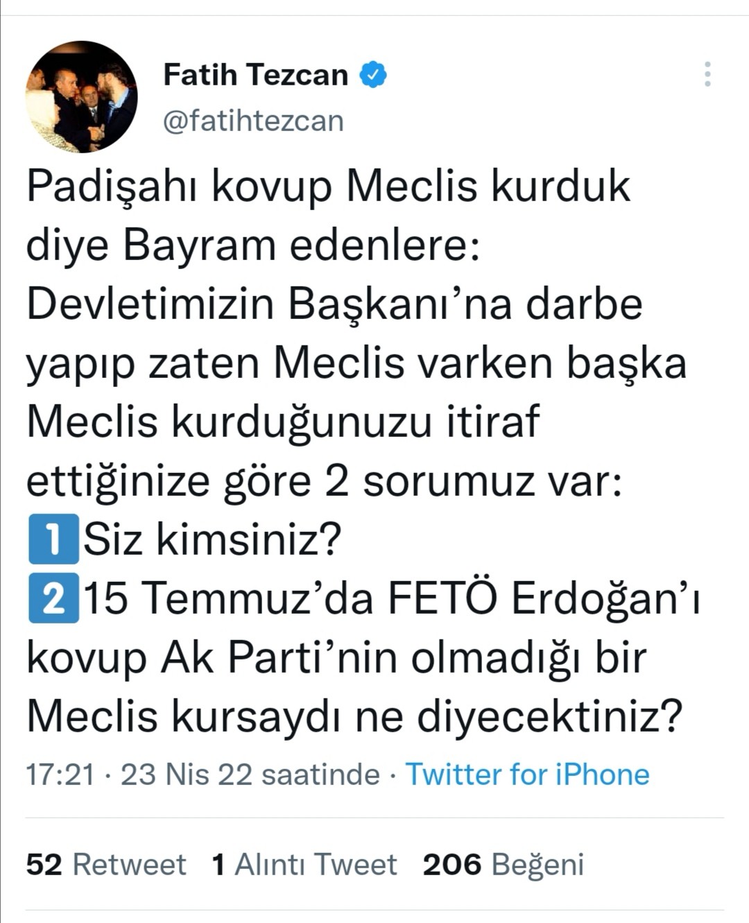 fatih tezcan, 23 nisan dolayısıyla şöyle bir tweet atmış:
