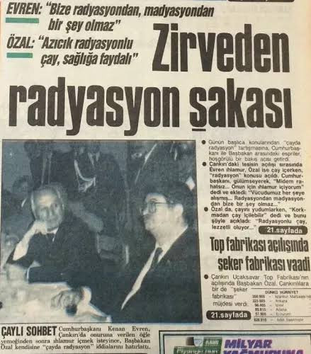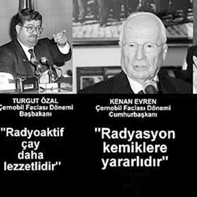 çernobil faciası'ndan sonra dönemin cumhurbaşkanı kenan evren ile dönemin başbakanı turgut özal'ın utanmadan basına verdiği demeçlerdir. 1986 çernobil faciası sonucu bütün karadeniz havzası, tıpkı hiroşima gibi radyasyona bulanınca insanlarda o gün bugündür kemik hastalıkları başladı.