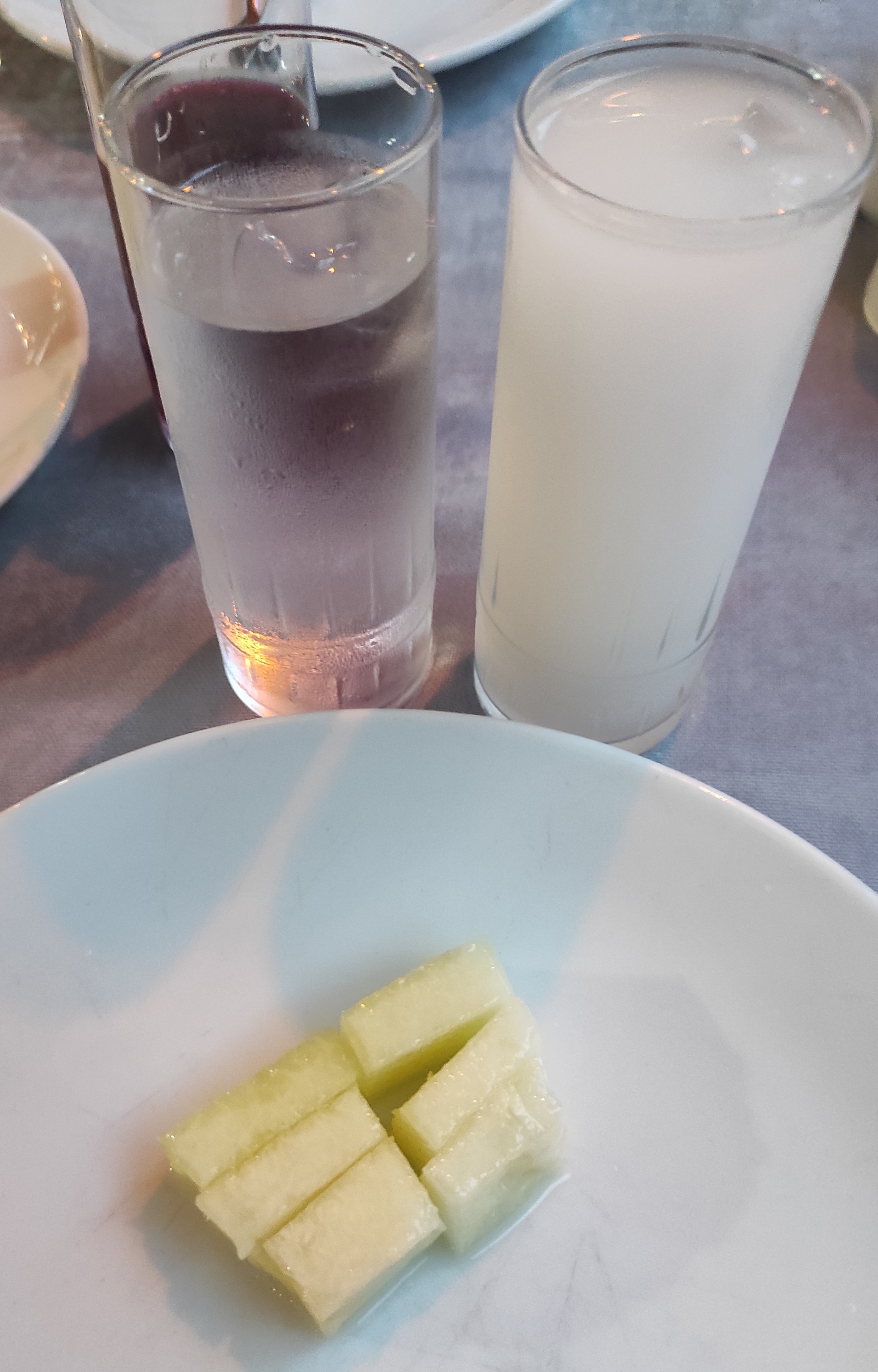 rakının yanında kavun ve peynir benim olmazsa olmazım. bunları garantiye aldıktan sonra domates gelir. sonra imkan varsa patlıcanlı ve yogurtlu bir şeyler. tabi ekmekler kızarmış olacak. daha da başka bir şey aramam.