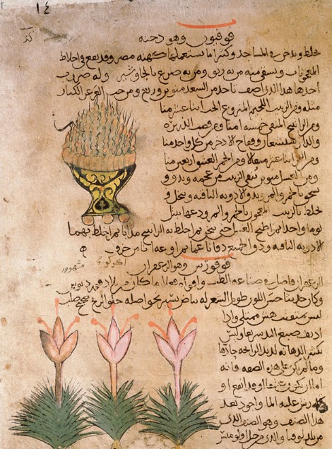 - dioscorides'in de materia medica'sının 10. yüzyıla ait arapça versiyonundan safranla ilgili bir sayfa