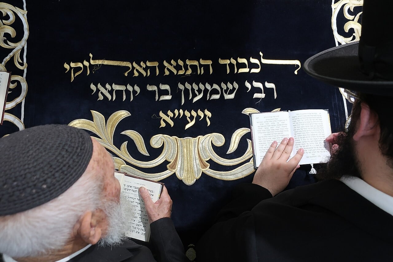 şimon bar yohay'ın mezarında dua eden ve tevrat okuyan yahudiler