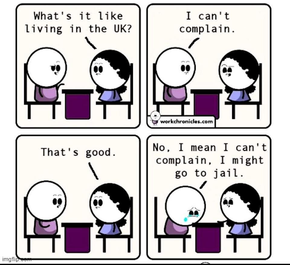 abartı içeren ama britanya'nın gerçek bir sorunundan bahseden basit bir ofansif mizah yorumuna verilen tepki bu. bu manyaklar, britanya'yı istila eden sahra altı afrikalıların ve müslümanların işledikleri suçlardan rahatsız değiller; aksine bunların dile getirilmesinden, haberleştirilmesinden, soruşturulmasından ve cezalandırılmasından fevkalade rahatsızlar. somut ve nesnel gerçekliğin dile getirilmesi onlara göre ırkçılık ve islamofobi.