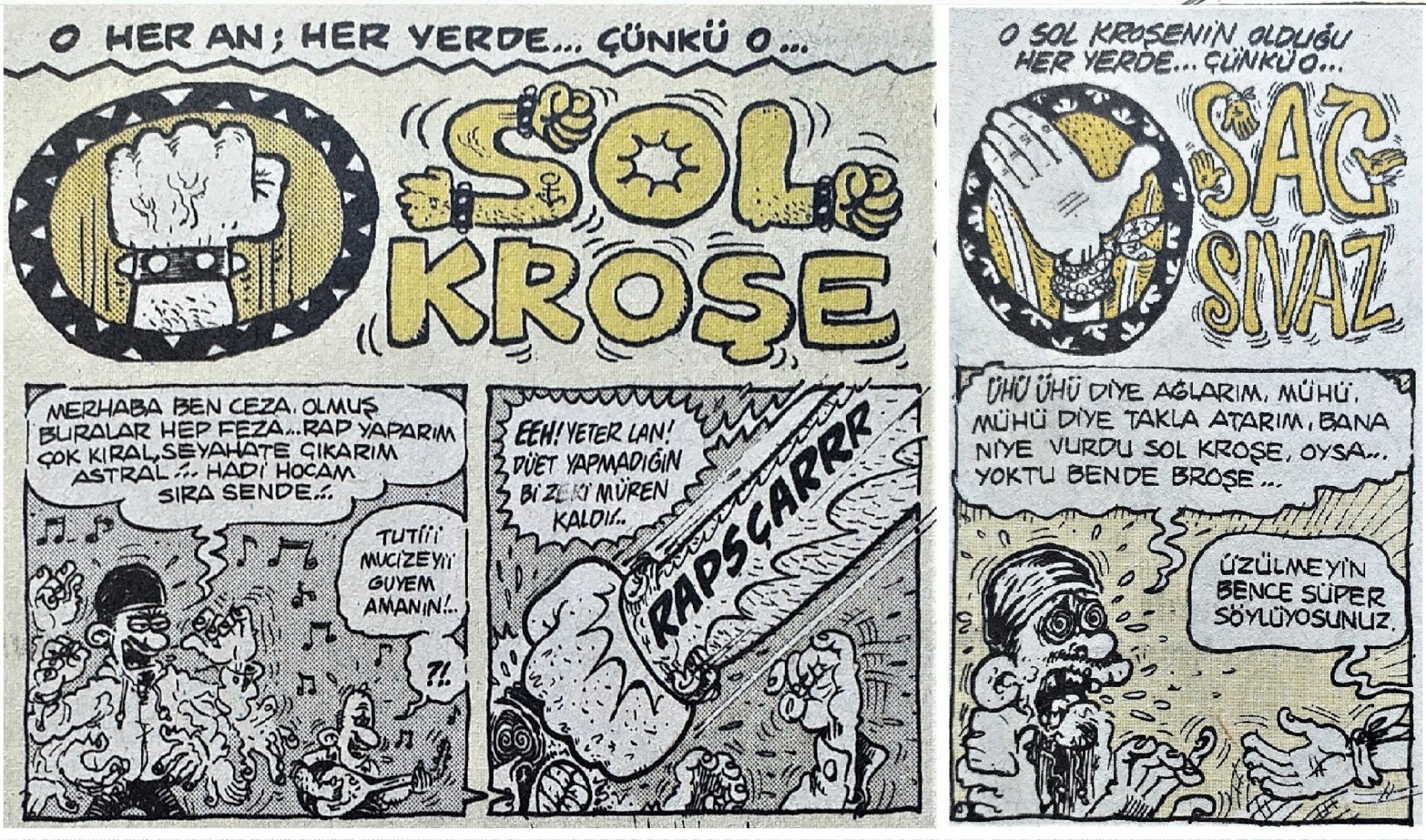 bülent üstün'ün idi hatta önce kendisini çizmişti "merhabalar!!! ben müthiş yetenekli çizer bülent üstün!!!!" diyordu sonra sol kroşe geliyordu. bu sol kroşe hülya avşar, garfield, rapçi fuat, tatu grubu, bedri baykam, sudoku bulmacası gibi ünlülere de çarpmıştır ve sağ sıvaz avutmuştur.
