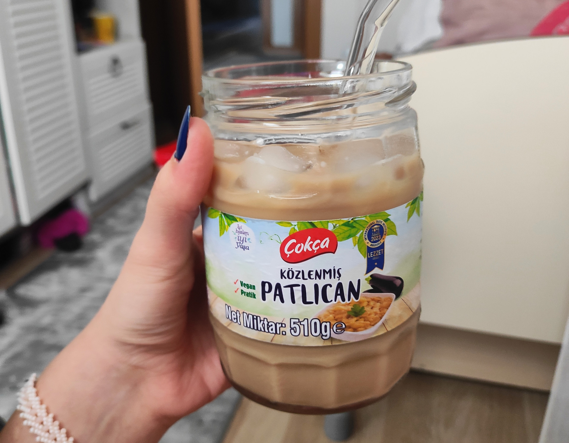 azcık zenginleştirmek için şu hasır bardak altlığını sıkıştırdım, bir de elimi de, ojeli tırnaklarımı da sıkıştırayım dedim ki ne göreyim..