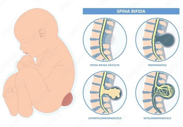 1)spina bifida occulta: en basit şeklidir. dışardaki deri tam oluşmuştur fakat kemik kanalının oluşumunda eksiklik vardır.
