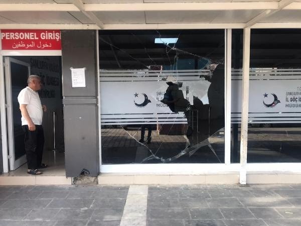 şanlıurfa'daki bir grup suriyeli sığınmacı, sistem arızası nedeniyle işlem yapamadıkları gerekçesiyle il göç idaresi'ne saldırmış.