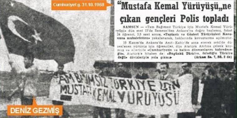 deniz gezmiş ve mahir çayan'ın 1968'de amerikan emperyalizminin yerli işbirlikçilerine karşı samsun'dan ankara'ya doğru, kastamonu'daki istiklal yolu üzerinden yaptığı muhteşem ve haklı bir yürüyüştür. bu konuda deniz gezmiş ve mahir çayan, basına şu demeci vermiştir: "türkiye'de mustafa kemal'e gerçekten sahip çıkanlar bizleriz. yaşasın tam bağımsız türkiye!.." aşk olsun sana çocuk...