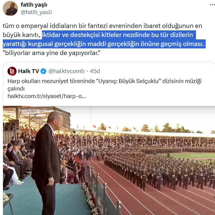 unutulmamalıdır ki, bir askerin en büyük duası, görevinin başında ettiği yemindir. onun seccadesi vatan toprağı, tesbihi ise tetiğindeki parmağıdır. gerisi, bu kutsal ocağa siyasetin ve ayrışmanın zehrini enjekte etmektir.
