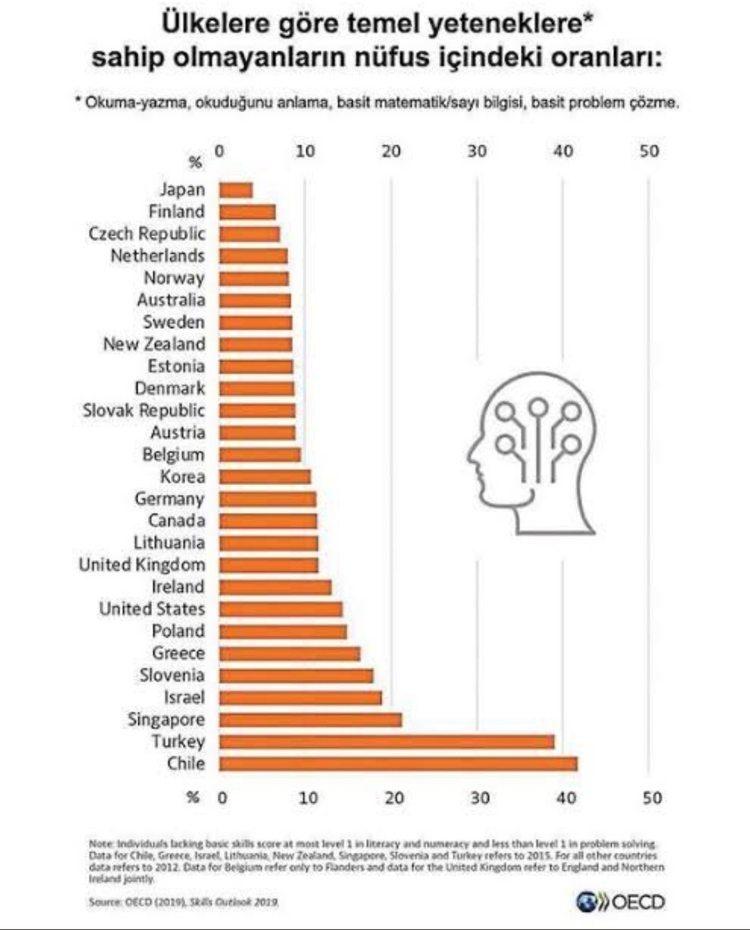 ülkelere göre temel yeteneklere sahip olmayanların oranı