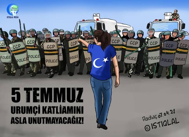 urumçi katliamı, 5 temmuz 2009'da komünist çin'in doğu türkistan'daki masum uygur türkleri'ni aşırılıkla mücadele adı altında durduk yere katlettiği, barın katliamı ve gulca katliamı'ndan sonra yaptığı üçüncü büyük soykırımdır. burnumuzda tütüyor, çinli'nin kan kokusu!..